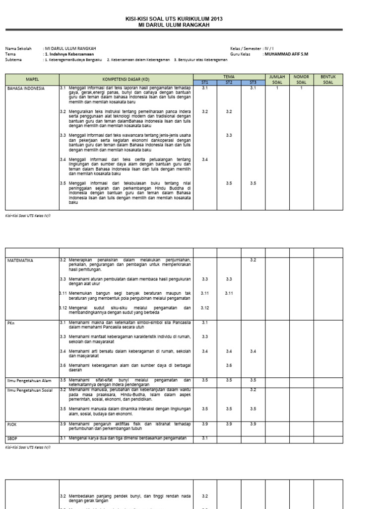 Kurikulum Merdeka, dengan penekanannya pada pembelajaran yang berpusat pada siswa dan pengembangan kompetensi, menuntut pendekatan yang lebih mendalam dalam mempersiapkan materi ajar dan evaluasi. Bagi guru dan orang tua, memahami struktur dan isi dari kisi-kisi soal adalah kunci untuk memastikan proses belajar mengajar berjalan efektif dan siswa dapat mencapai hasil yang optimal. Artikel ini akan mengupas tuntas mengenai kisi-kisi soal untuk Tema 1 Kelas 4 Sekolah Dasar, yang biasanya bertajuk "Indahnya Kebersamaan".