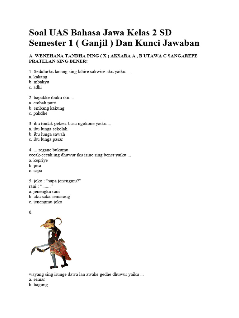 - Menjaga Kelestarian Budaya: Melalui soal-soal Bahasa Jawa, anak-anak diajak untuk terus berinteraksi dengan kekayaan budaya lokal mereka, mulai dari cerita, lagu, hingga nilai-nilai luhur yang terkandung di dalamnya.